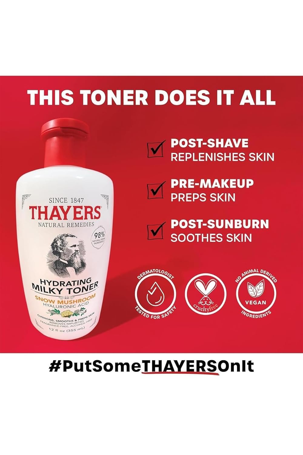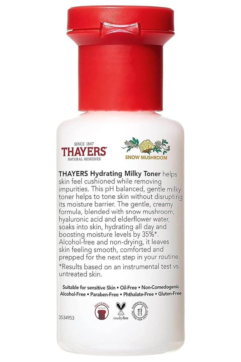 Thayers Milky Hydrating Face Toner with Snow Mushroom, Hyaluronic Acid and Elderflower, Dermatologist Recommended Gentle Alcohol Free Facial Skincare for Dry and Sensitive Skin, Paraben Free, 3 FL oz